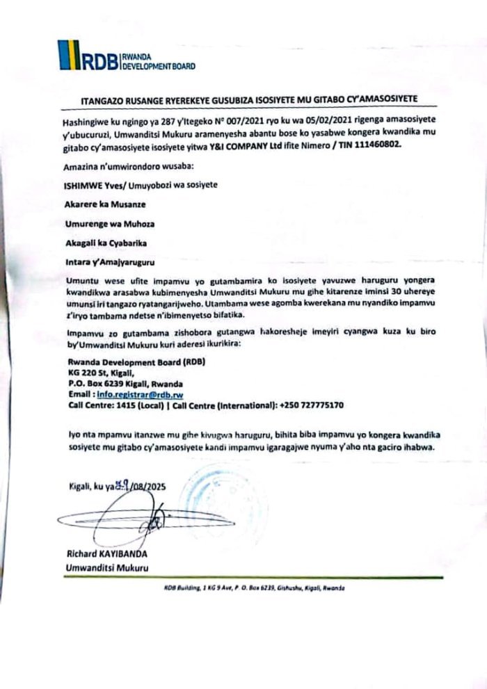 ITANGAZO RUSANGE RYEREKEYE GUSUBIZA ISOSIYETE MUGITABO CY’AMASOSIYETE