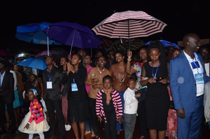 Ahagana saa kumi n’iminota mike nibwo mu Mujyi wa Kigali by’umwihariko muri aka kace ka Remera imvura yatangiye kurwa ari nyinshi ariko abantu bari bitabiriye iki gitaramo babanza kugama nyuma igabanyutse baragaruka ari nako abandi bagenda bava mu ngo zabo bagera aha kuri Sitade Amahoro.