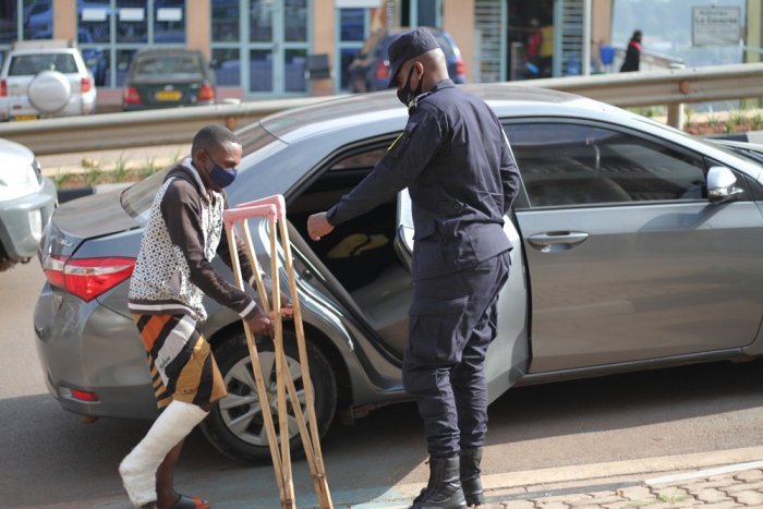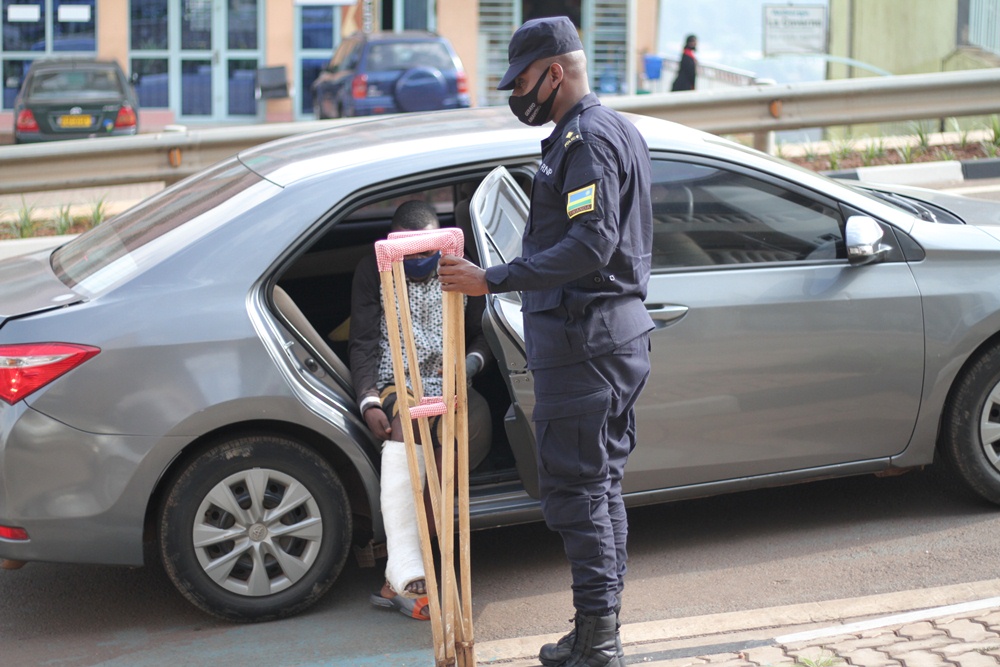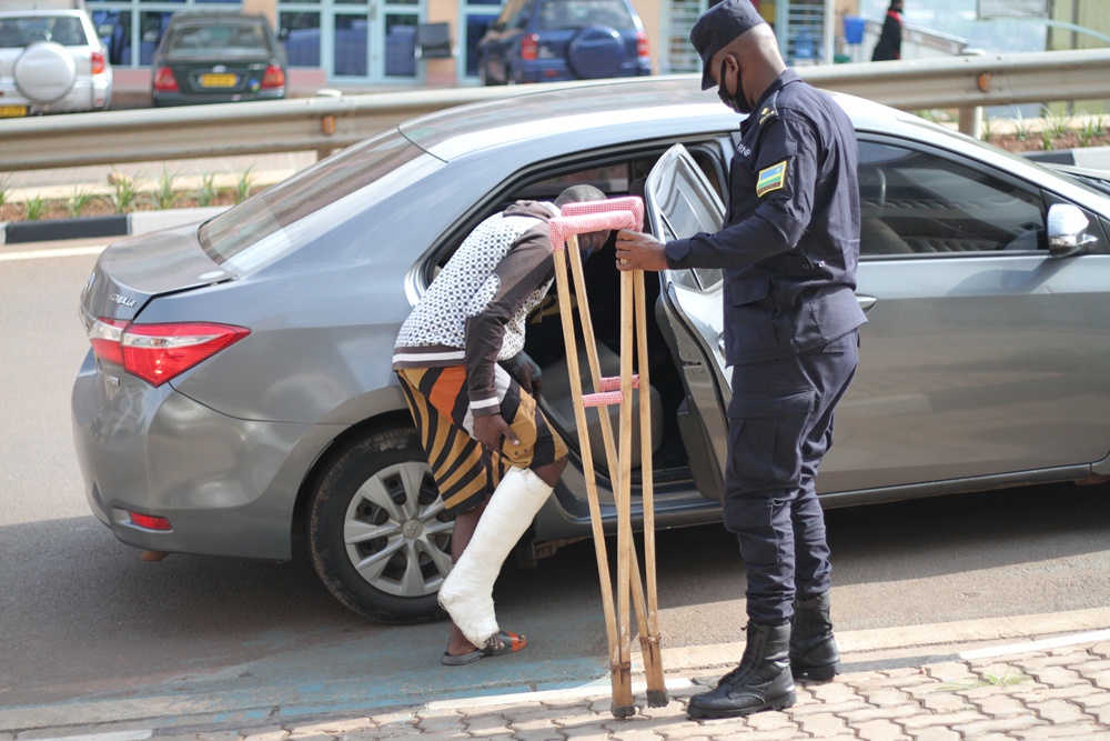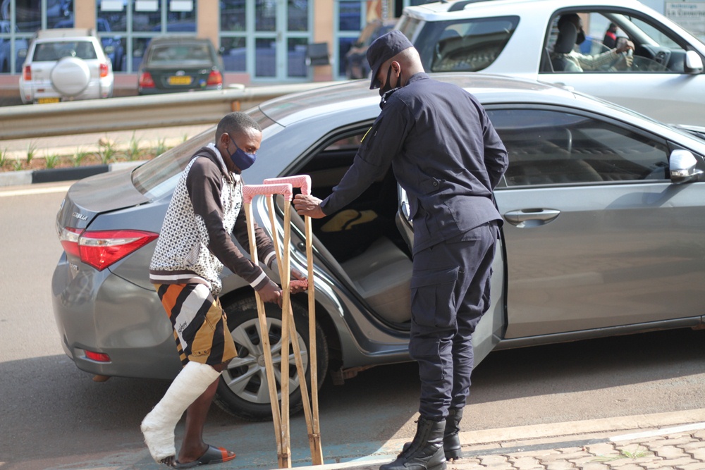 Umusore wagenderaga ku mbago azamuka ku Muhima yerekeza mu mujyi wa Kigali rwagati, bigaragara ko yashakaga kugera kwa muganga ariko adafite ubundi buryo yabigenza, yagobotswe n’abapolisi bamuciyeho bakamugirira impuhwe, bakamushyira mu modoka yabo y’akazi bakamugeza kwa muganga.