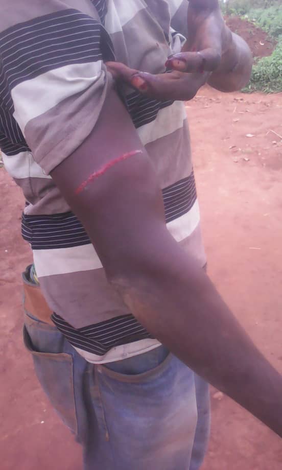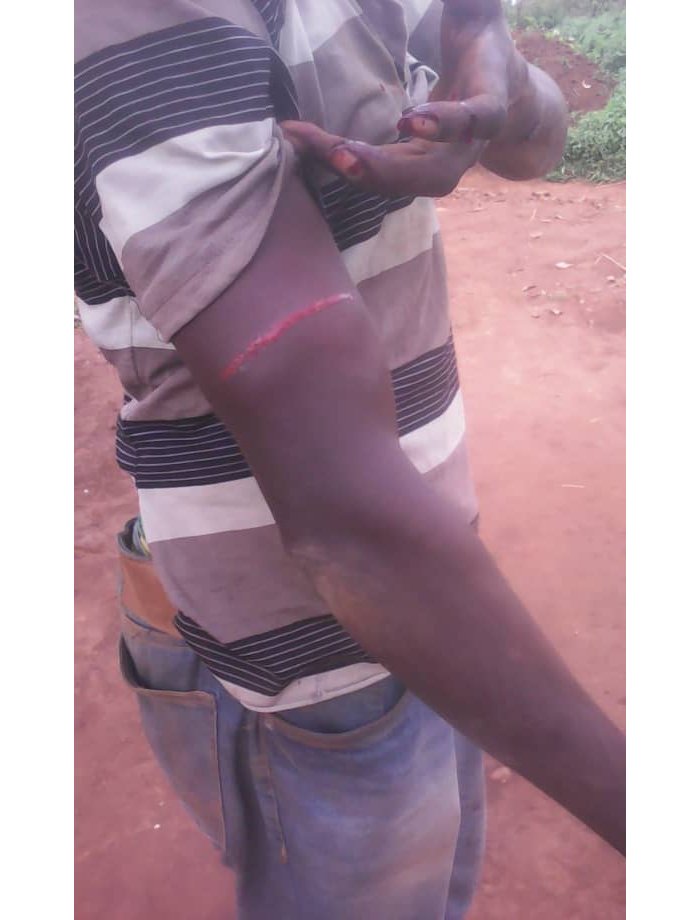 Habanabashaka Emmanuel, umwe mu banyerondo bari bagiye muri iki gikorwa, ubu afite inkovu zigera kuri eshanu z’imihoro yatemwe na Zirimabagabo Eric.
