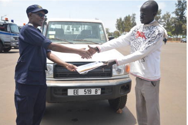 Assistant Commissioner of Police (ACP) Tony Kuramba, Komiseri wa Interpol muri Polisi y’u Rwanda ni we wayoboye umuhango wo gushyikiriza uwitwa Deng Jacob Garang imodoka ye ku cyicaro gikuru cya Polisi ku Kacyiru.
