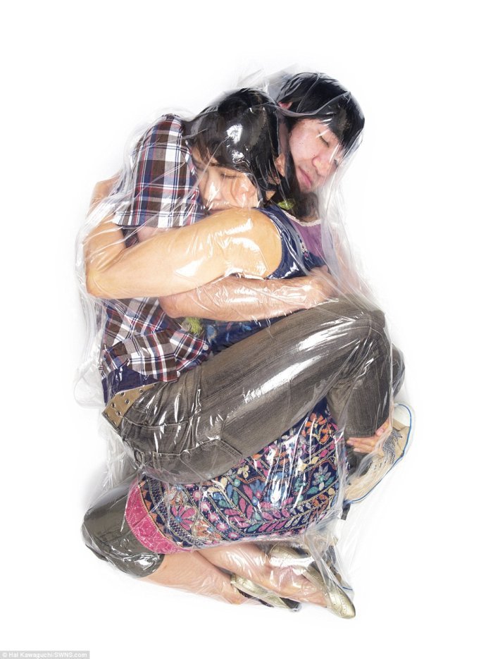 Uyu gafotozi Haruhiko Kawaguchi, aba afite umwanya muto cyane wo gufata amafoto vuba vuba ngo abakundana badapfa kuko baba bahambiranyije mu ishashi, basangira akuka gacye cyane bahumekera muri iyo shashi, kandi babimusaba ku bwinshi ngo nabo berekane ko bakundana bihambaye.