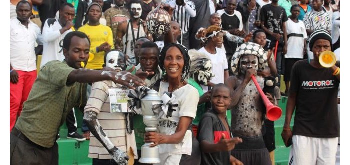 Mu rwego rwo guhumuriza umutoza n’abakinnyi, abafana ba APR FC bazanye igikombe ku kibuga