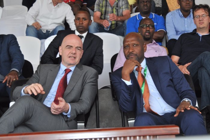 Perezida wa FERWAFA na Perezida wa FIFA barebanye uyu mukino