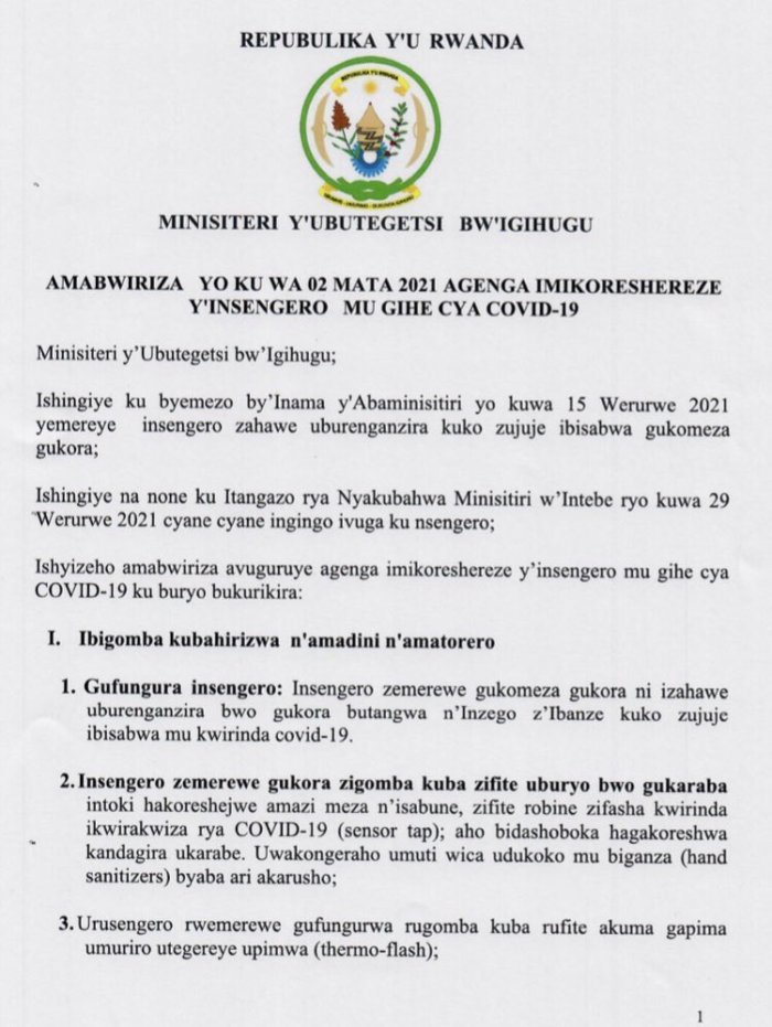 Aya mabwiriza yasohotse kuri uyu wa Gatanu tariki 02 Mata 2021, yibutsa ko insengero zemerewe gukora ari izabiherewe uburenganzira n’inzego z’ibanze nyuma yo gusuzumwa ko zujujije ingamba zo kwirinda icyorezo cya COVID-19.