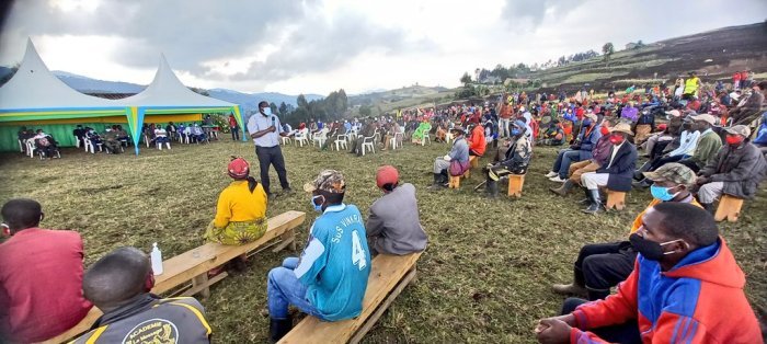 Minisitiri w’Ubutegetsi bw’Igihugu, Hon Gatabazi Jean Marie Vianney uri mu ruzinduko rw’akazi mu Ntara y’Amajyepfo, uyu munsi yahaye umuganda abaturage bahawe akazi ko gukora amaterasi mu Murenge wa Ruheru mu Karere ka Nyaruguru.