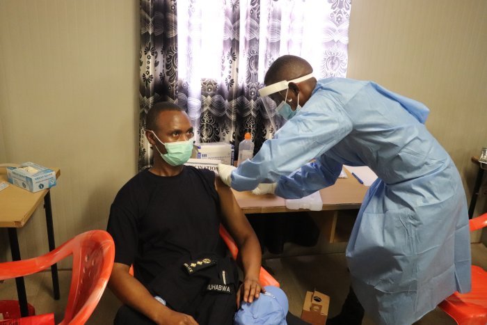 Lt Col Vianney Kabalisa, uyoboye itsinda ry’Igisirikare cy’u Rwanda mu by’ubuvuzi, yabwiye Abanyarwanda bari mu butumwa bw’amahoro muri kiriya gihugu ko Guverinoma y’u Rwanda ibafata nk’abihutirwa mu guhabwa uru rukingo kubera inshingano zabo.