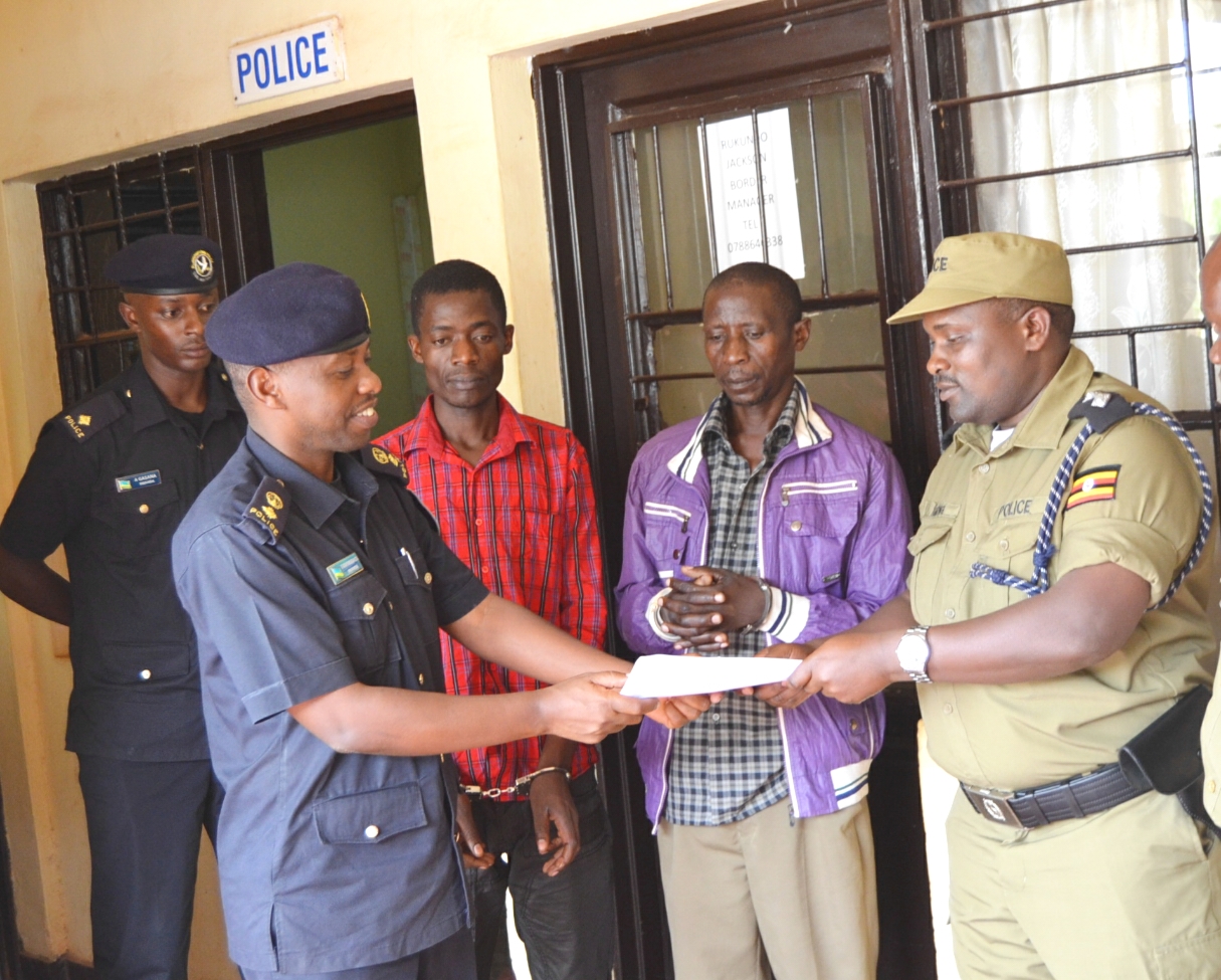 Polisi y’u Rwanda yashyikirijwe abagabo babiri bari barahungiye muri Uganda nyuma yo gutoroka gereza, ikaba yarabakiriye ku italiki ya 21 Gashyantare ku mupaka wa Gatuna.