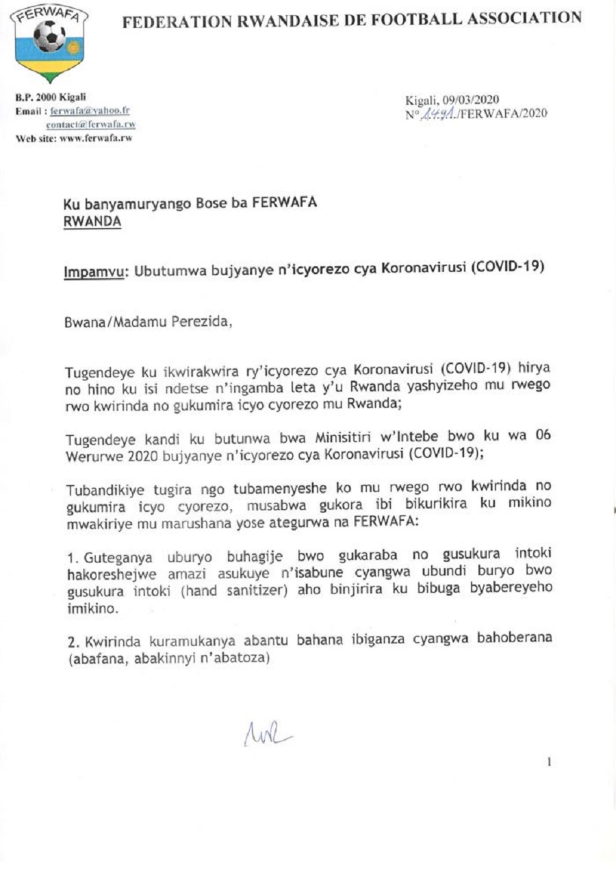 Nk’uko bigaragara mu ibaruwa yandikiwe abanyamuryango bose b’ishyirahamwe ry’umupira w’amaguru mu Rwanda(amakipe), bayamenyesheje ko bagomba kubahiriza izo ngamba, zikaba zafashwe hagendewe ku mabwiriza ya Misisitiri w’intebe.